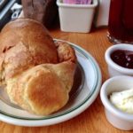 For our next adventure we decided to hike the Jordan Pond Loop, an “easy” 3.5 mile hike along the shore of Jordan Pond. Since this is a popular hike and the park was extremely crowded (like all of the national parks during the summer) we targeted an early arrival at the parking lot. We easily found a parking place, put on our packs, and took off. The hike was easy going at first as the path on the east side is a well-groomed, level  gravel path following the shoreline of the pond. Along the north side we encountered a couple of rustic bridges over the streams flowing into the pond. As we continued around to the west side suddenly we were confronted with two areas of big boulders that we had to scramble over. Beyond the boulders, the gravel path turned into an elevated log boardwalk over the wetlands for the final mile. Eventually the trail returned us to the parking lot and we made our way to Jordan Pond Restaurant for some of their famous popovers. Without a reservation we had to wait 45 minutes for a table.