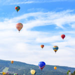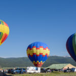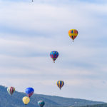 After watching from a distance and determining the direction of flight, we drove into town where we were able to catch a mountain backdrop and eventually watch some of the balloons descend.