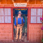For our first day here, we decided to walk over to the lodge. There is a hiking trail from the campground to the lodge but, being unfamiliar with the terrain, we decided to take the longer route via the road. Along the way, we stopped at the convenience store to see what they offered in case we needed any supplies. At the lodge we toured the Trading Post Museum, stepped into John Wayne’s Cabin (actually Mike Gouldings potato cellar), “met” John Wayne at the Saloon, and tried out a stage coach.