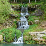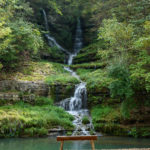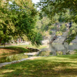 Dogwood Canyon is one of Johnny Morris’ (the founder of Bass Pro Shops) conservation efforts. From an initial purchase of 2,260 acres in 1990, the park has grown to more than 10,000 acres overlapping Missouri and Arkansas. The park encompasses towering bluffs, cascading waterfalls, spring-fed creeks filled with rainbow trout, and handcrafted bridges along 6 1/2 miles of paved trails. Bison, elk, deer, and long-horn cattle are raised in a dedicated pasture area (viewable on the tram tour). The park also contains a working grist mill, a restaurant, and a treehouse built by Pete Nelson and the crew of Animal Planet’s Treehouse Masters.