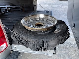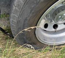 Since our drive the next day was only about 4 hours and we needed to arrive after 3 p.m. we took our time before hitting the road. We were making great time until just south of Franklin, Indiana on I- 65 when we suddenly heard a small pop and the truck began to shimmy. Bill immediately pulled to the shoulder and we hopped out thinking we had another RV tire blow out. Instead it was both passenger side dually tires on the truck.