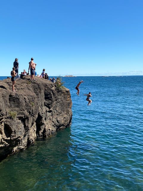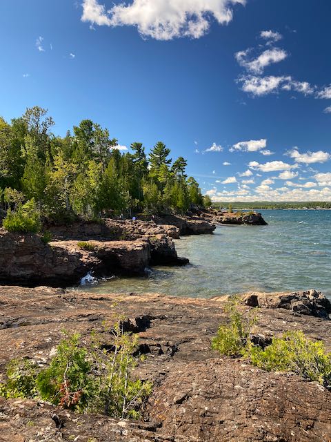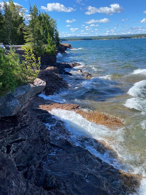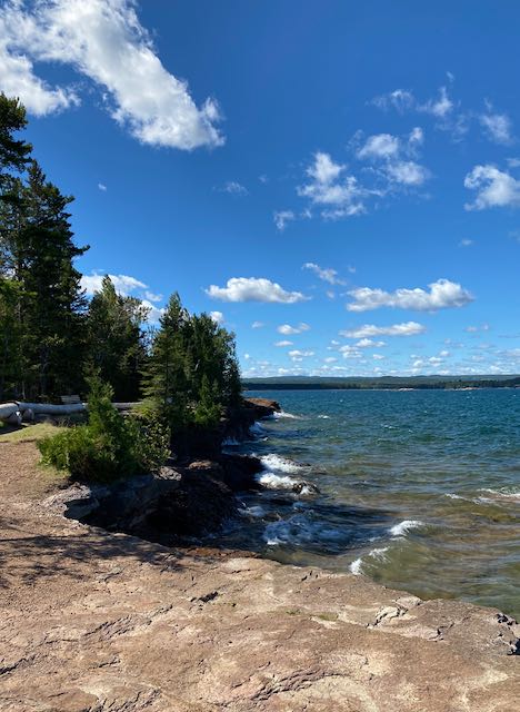 On the way to Marquette, we stopped to investigate Presque Isle Park – a 323 acre public park located on an oval-shaped peninsula. The east end of the park sits high atop sandstone cliffs offering great vantage points for watching the waves of Lake Superior carve coves far below. On the west end is Sunset Point a great spot to watch the sun set. Connecting the two is a two mile scenic roadway.