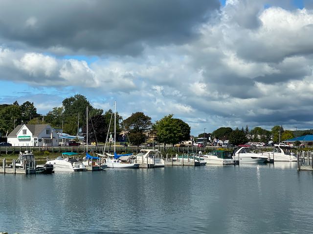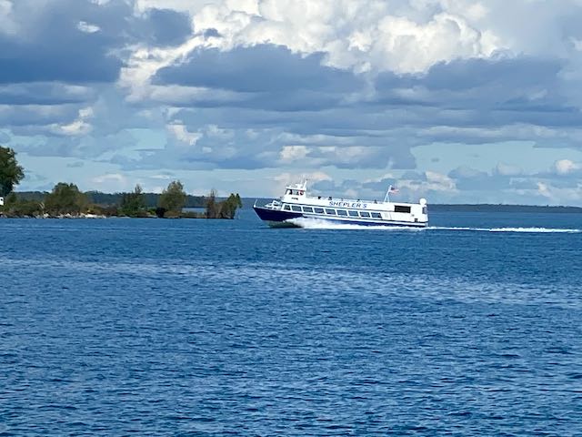 Since St. Ignace provided such ready access to Mackinac Island, we couldn’t resist the urge to hop onto a Shepler’s Ferry (one of two lines that service the island) and visit the island for a second time. (Our first visit was in the summer of 2018.) Although we could have arranged for the ferry service to transport us directly from the campground to the ferry dock, we chose to drive. We arrived just in time to catch a sailing that actually went under the Mackinac Bridge for an up-close look.