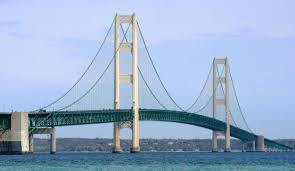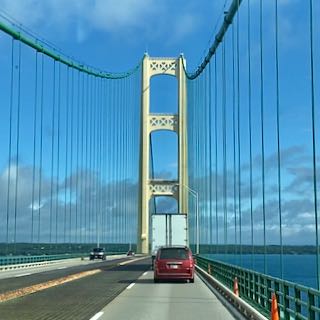 We were a bit apprehensive about driving the rig across the bridge especially with high winds predicted for later in the day. Our solution was to leave Traverse City early in the morning and cross the bridge before noon. Luckily the winds were in our favor and we had no issues crossing on what proved to be a beautiful partly cloudy day.