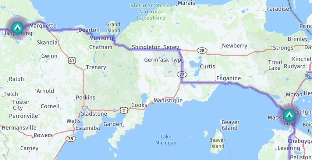 25 minutes away from Ishpeming is Marquette, Michigan.