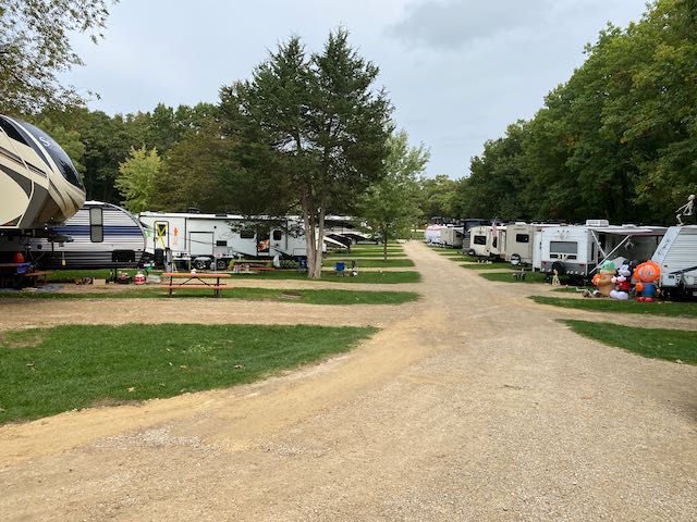 We used the credits from our two previous cancelations to reserve two weeks at Fox Hill RV Park in Baraboo, Wisconsin. Surprisingly, the campground office was already decorated for Halloween when we arrived. As it turned out, they were holding Halloween weekends complete with decorating contests, hay rides, door-to-door trick or treating and other kids activities. Boy, our shy little dog Dawn was going to love this!! We checked in on a Monday and pretty much had the campground to ourselves until folks began to arrive on Thursday. By Saturday morning, every site was filled and the place was abuzz. We watched from inside our RV on Saturday evening as all manner of costumed characters marched past on the quest for candy. On Sunday morning we witnessed a mass exodus. Yea! Quiet again until the next weekend when the drama unfolded again.