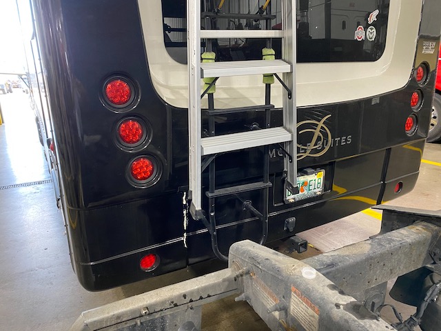 Back on the road, around Cedar Rapids, Iowa Bill discovered the trailer brakes were not working. We pulled into a nearby rest area where Bill determined that we had a broken brake line. Uncomfortable relying solely on the truck brakes, we called an RV repair shop (Sun & Fun RV) about 20 minutes further down the road in Tiffin, Iowa. They told us to come in and they would take a look. Unfortunately, they were unable to fix the problem but they did put us in contact with Truck Country back in Cedar Rapids. So back we went. After some discussion, they came up with a repair plan and had us back the rig into the service bay. As we backed, Bill and I were so focused on the sides of the bay and the worker directing us in that we failed to watch the backup camera. Suddenly everyone was yelling STOP! Can you believe that we backed into a truck and damaged the end cap – yikes! Another repair for sometime in the future!