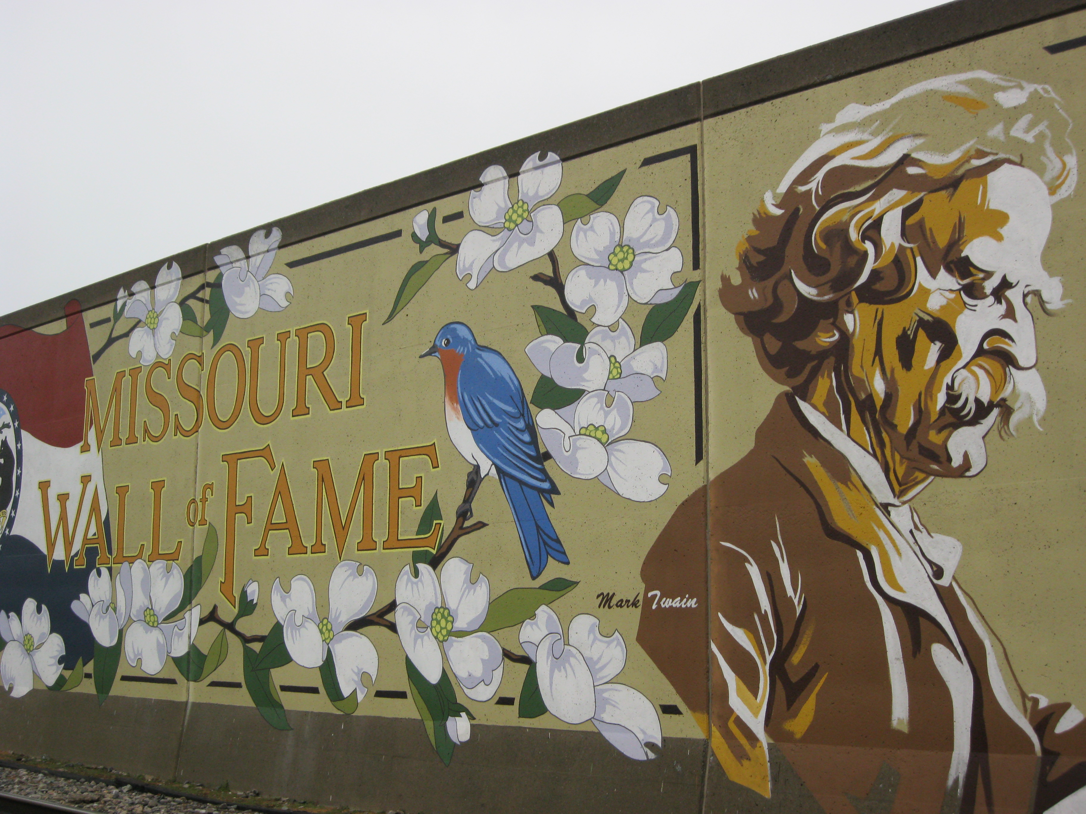 Today a 500 foot span of the flood wall is covered with a 45 panel mural depicting 46 or 47 famous people who were either born in Missouri or achieved fame while living there. This span is known as the Missouri Wall of Fame.