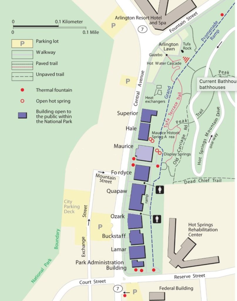 The Bathhouse Row you see today consists of eight bathhouse buildings that were constructed between the years of 1892 and 1923. This area along with the Grand Promenade was designated as a National Historic Landmark District in 1987.