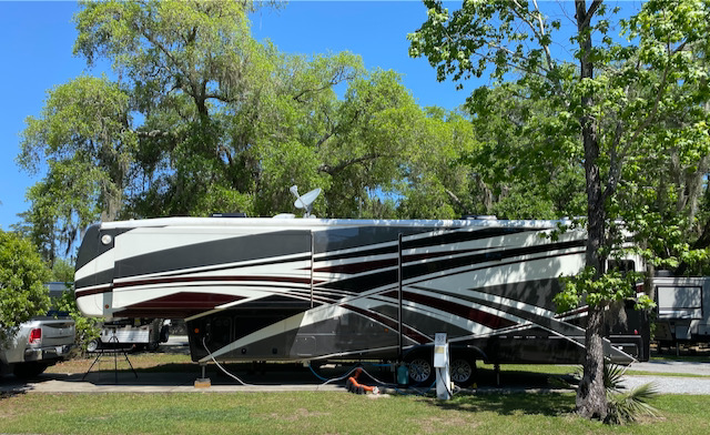Nearby campgrounds were full during our planning stage so, we stayed a bit further out in Chiefland, Florida at a new campground named Strawberry Fields for RV’ers. The owners are still in the process of building this park but the amenities and pull-thru sites are very well done.