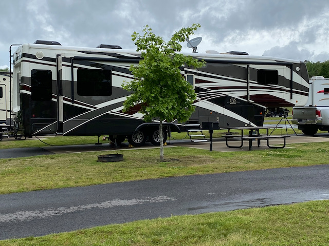 Since we had previously visited Hot Springs National Park, the Promenade, Lake Catherine State Park, and Garvan Woodland Gardens, we didn’t mind when the weather for the remainder of our visit turned cloudy and rainy. It gave us an opportunity to do some RV maintenance – replacing the replacement rear-view camera system. You see, before leaving Cypress Woods we had attempted to upgrade by swapping our working rear-view system for a bigger, nicer model. Although we tested the new system while stationary (at which time it worked great) we just couldn’t get it to work on the road. We tried everything we could think of including conversations with the manufacturer and various antenna combinations/placements but nothing helped. So, Bill installed yet another one. Keep your fingers crossed that this one works!