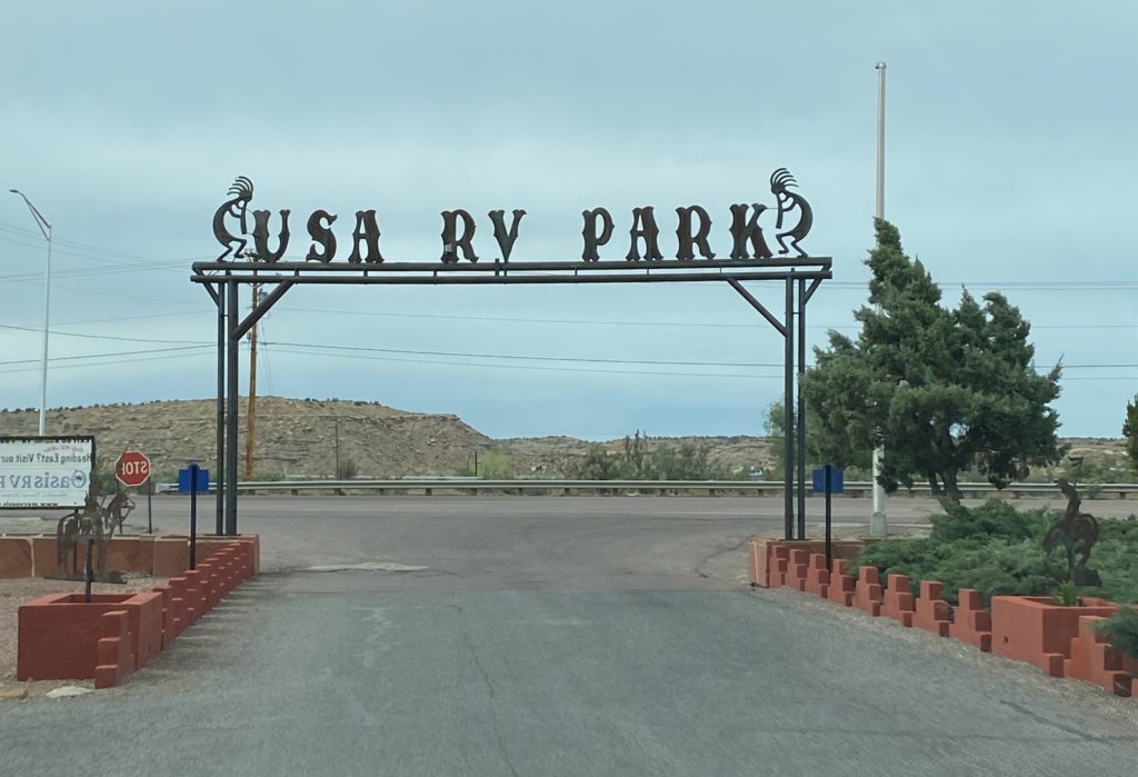 Our home base was the USA RV Park on Route 66. Centrally located on historic Route 66, the park was a short distance from many national and tribal parks including Mesa Verde (2 hours), El Morro (1 hour), Window Rock (1/2 hour), Zuni (45 minutes), Four Corners (2 hours), Monument Valley (3 hours), and the Petrified Forest (1 hour).