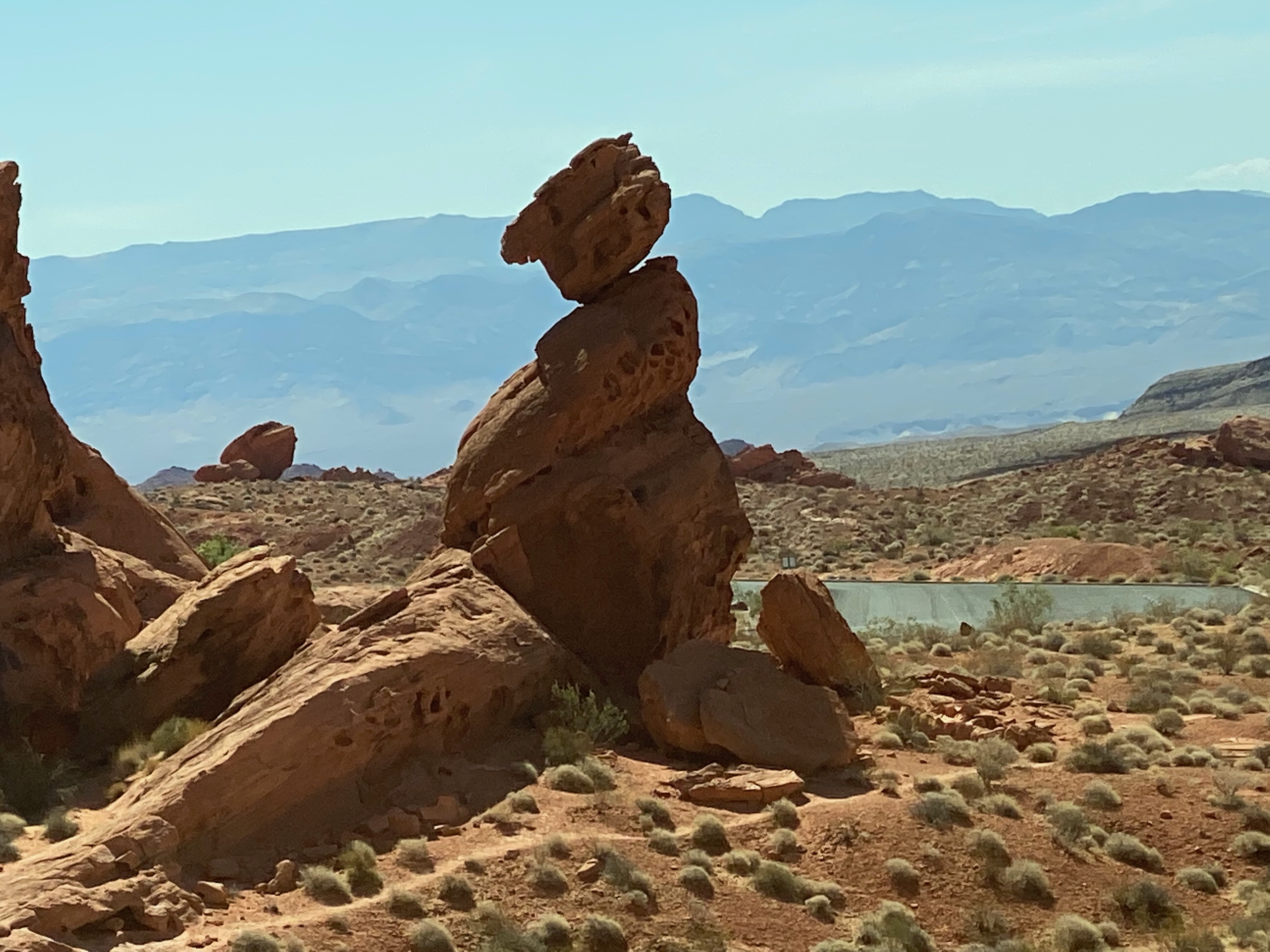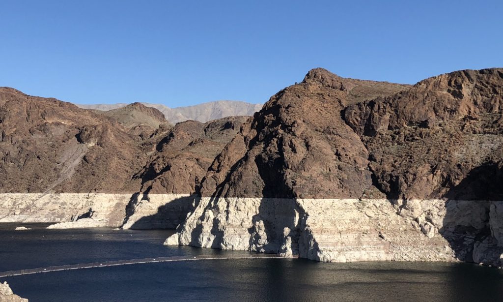 That’s right, this week we were in America’s Playground aka Las Vegas, Lost Wages, Entertainment Capital of the World, or the Neon Capital of the World. We left the cooler clime (about 7000 feet elevation) of Williams, Arizona and dropped to a hot desert clime (about 2000 feet elevation). We had visited Las Vegas before but never with the RV or our own vehicle so this time we had more options for exploring outside the city. We passed the Hoover Dam on the way in but couldn’t see it from the highway. We were able to catch a glimpse of Lake Meade and the bathtub ring showing the low water level.