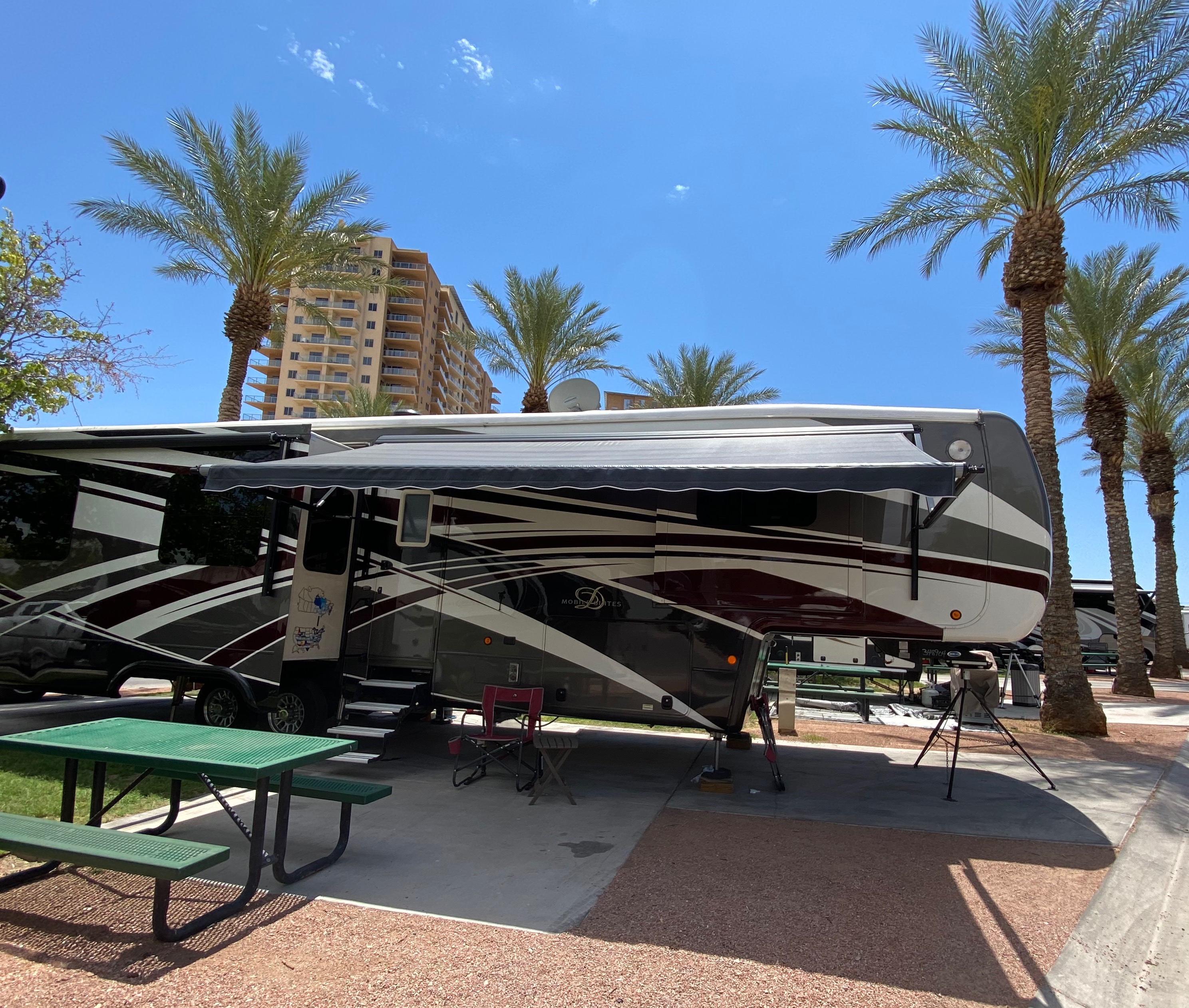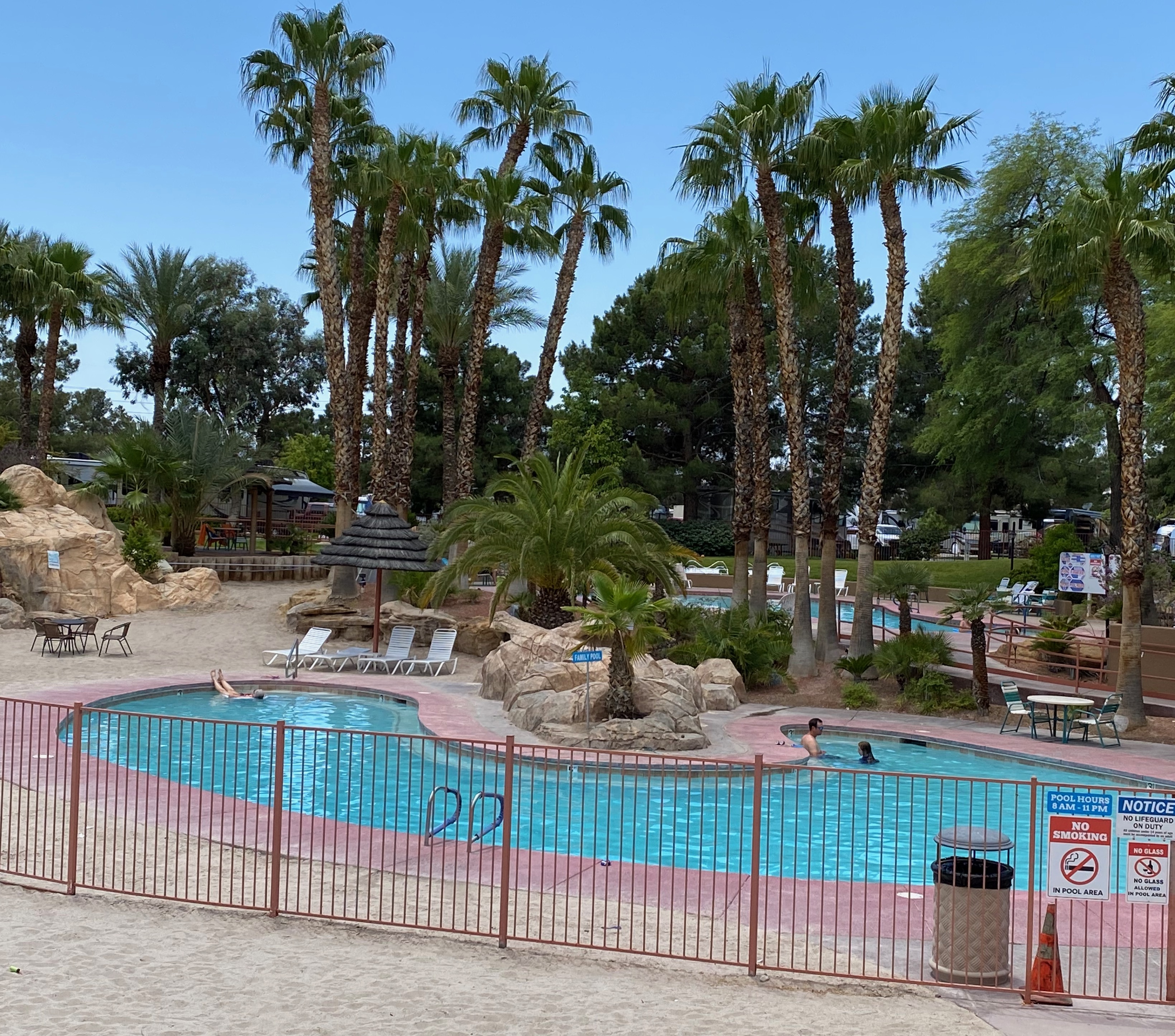 We had reservations at the Oasis Las Vegas RV Resort, just a short drive from the Strip. The resort boasts some great amenities (family pool, adult pool, 18 hole putting green, convenience store, restaurant) and nicely landscaped RV sites of various sizes. Be prepared for a booklet full of rules however.