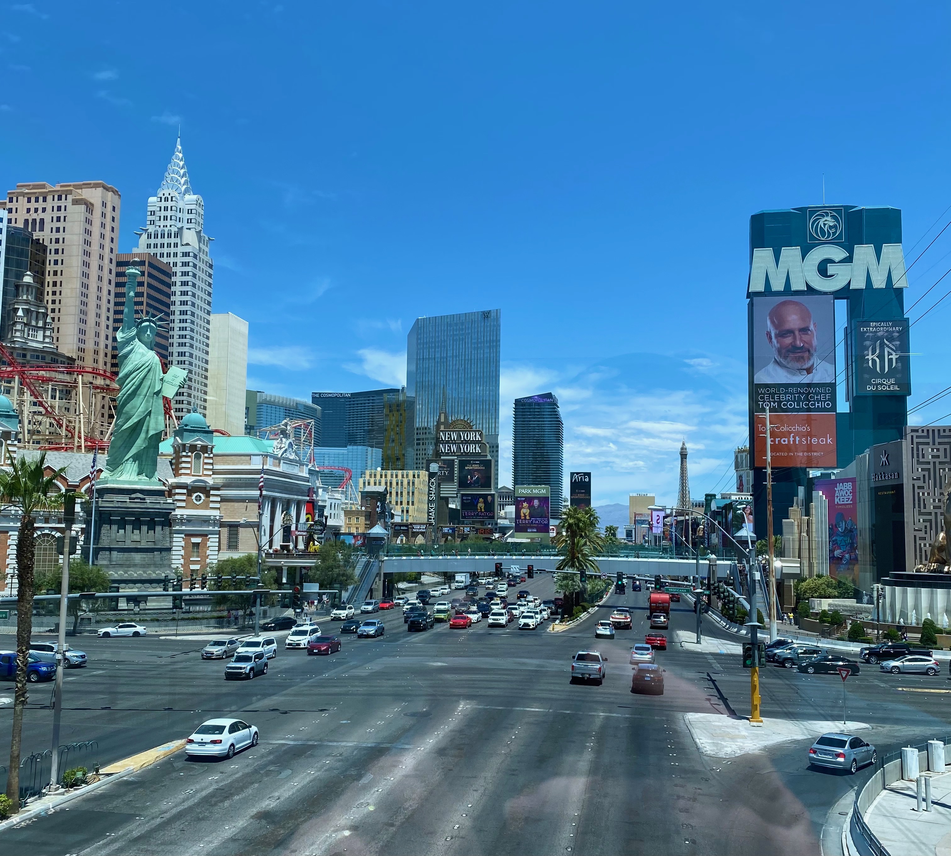 Since many of the best shows on the Strip were still dark, we decided to only pay a token visit one day. We parked at the Tropicana and walked around in the Luxor and Mandalay Bay before returning to the Shoppes at Mandalay Bay. Bill bought a shirt and hat at the Guinness Store and we had lunch at the Ri Ra Irish Pub. (My Irish stew was excellent and Bill enjoyed his bangers and mash.) That was enough of the Strip for us. Plus the temperature was over 100 degrees!