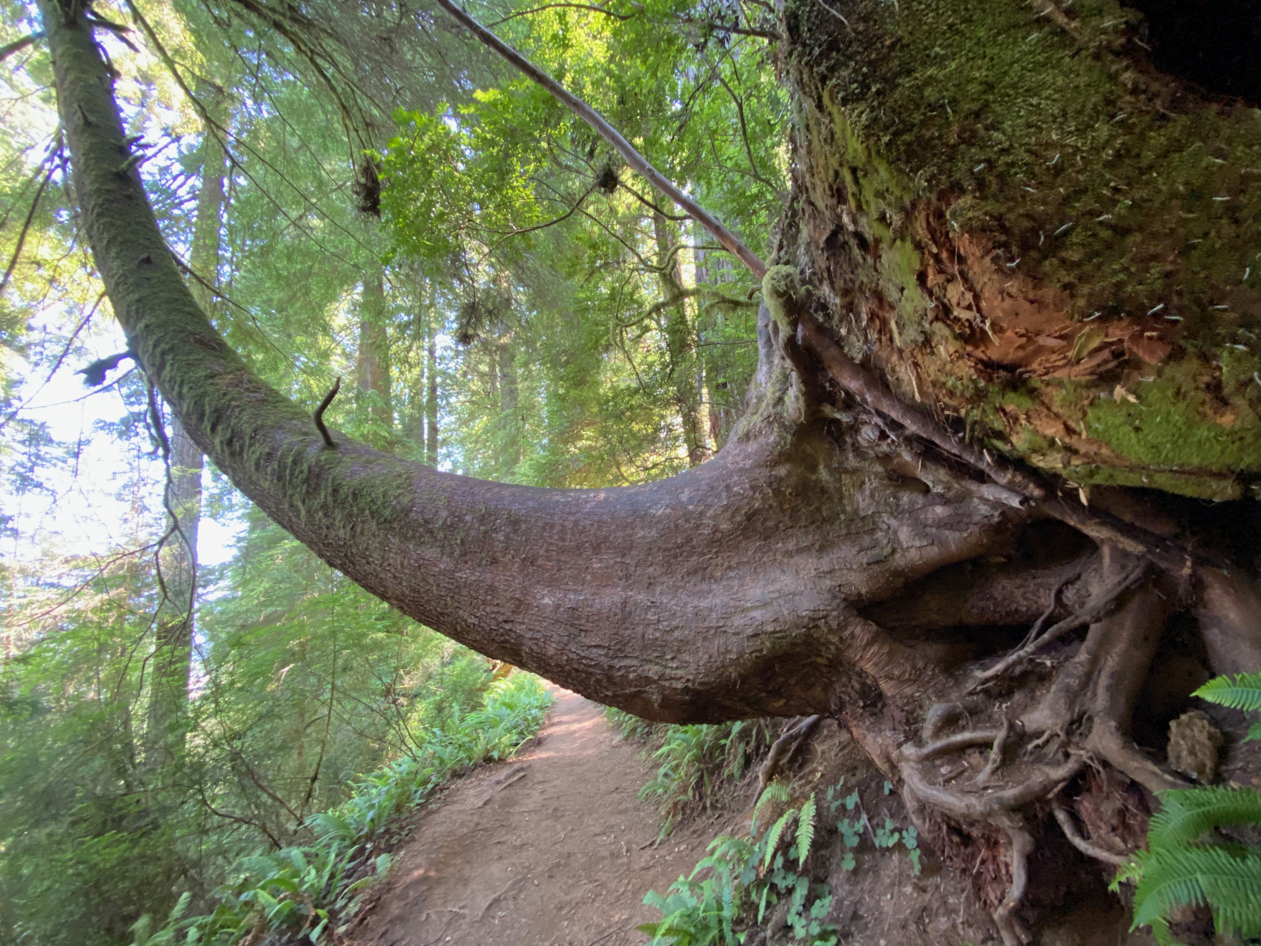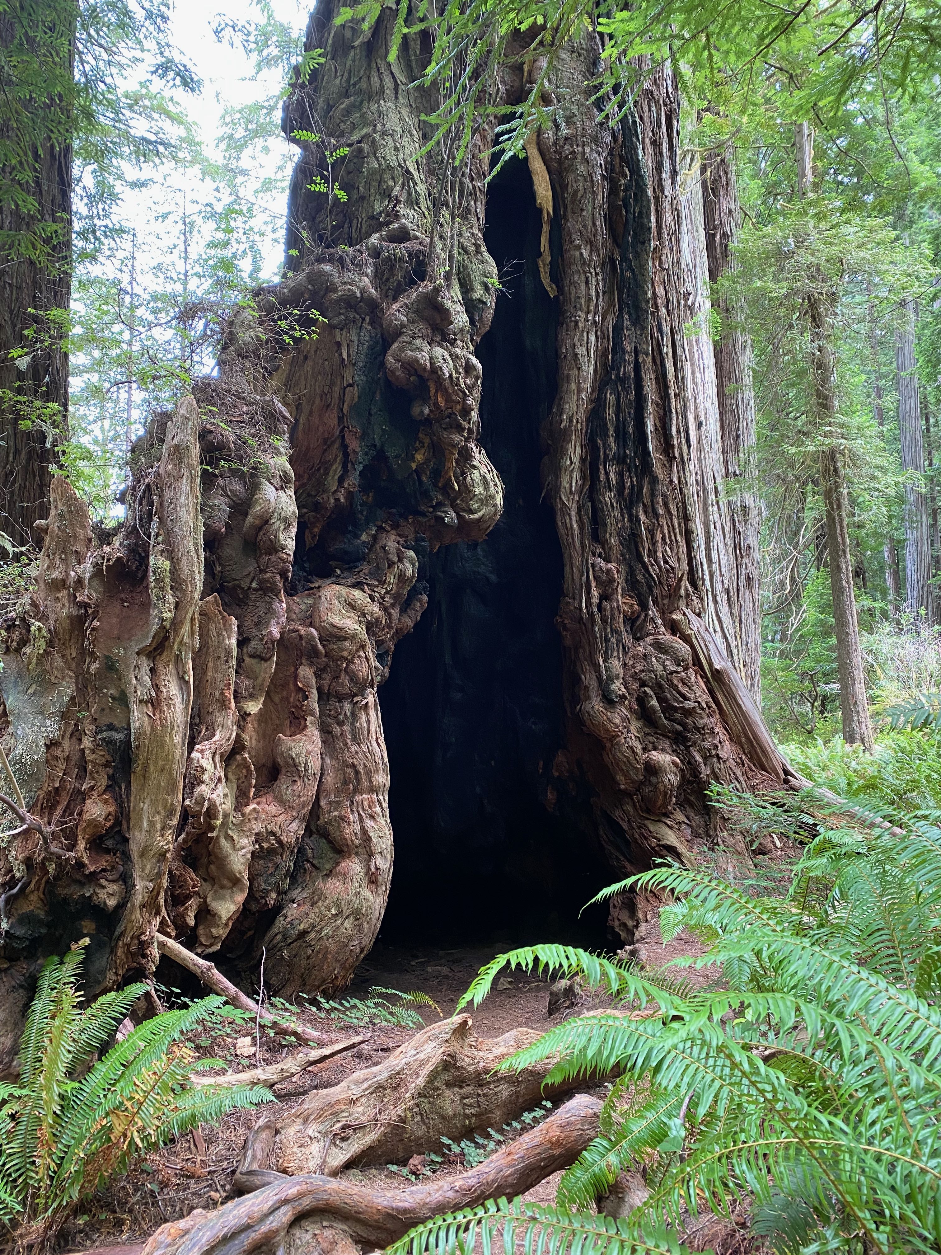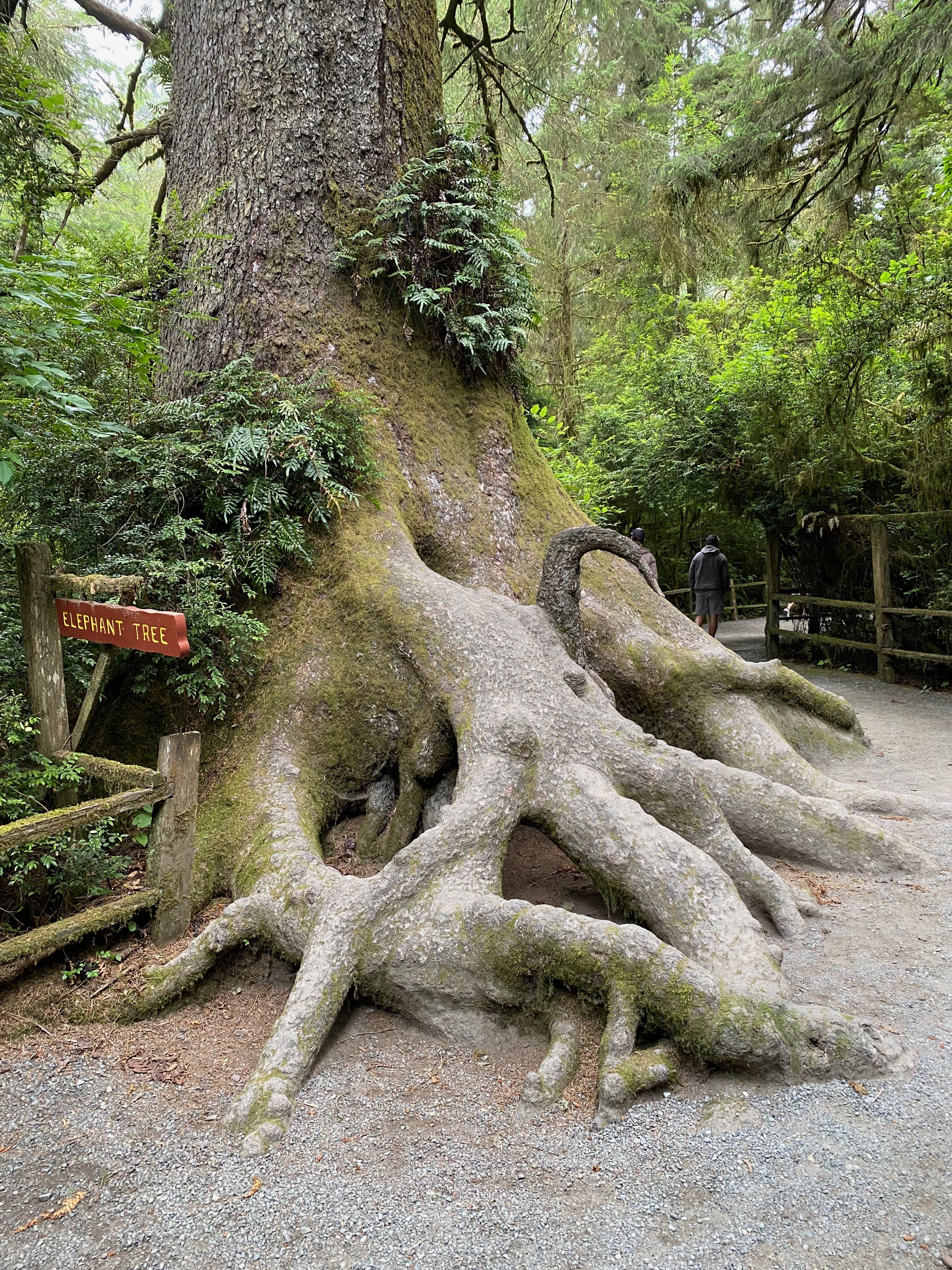 • Elephant Tree, a fallen Redwood that sent shoots up as new trees. This one is a unique specimen because of the open space underneath.