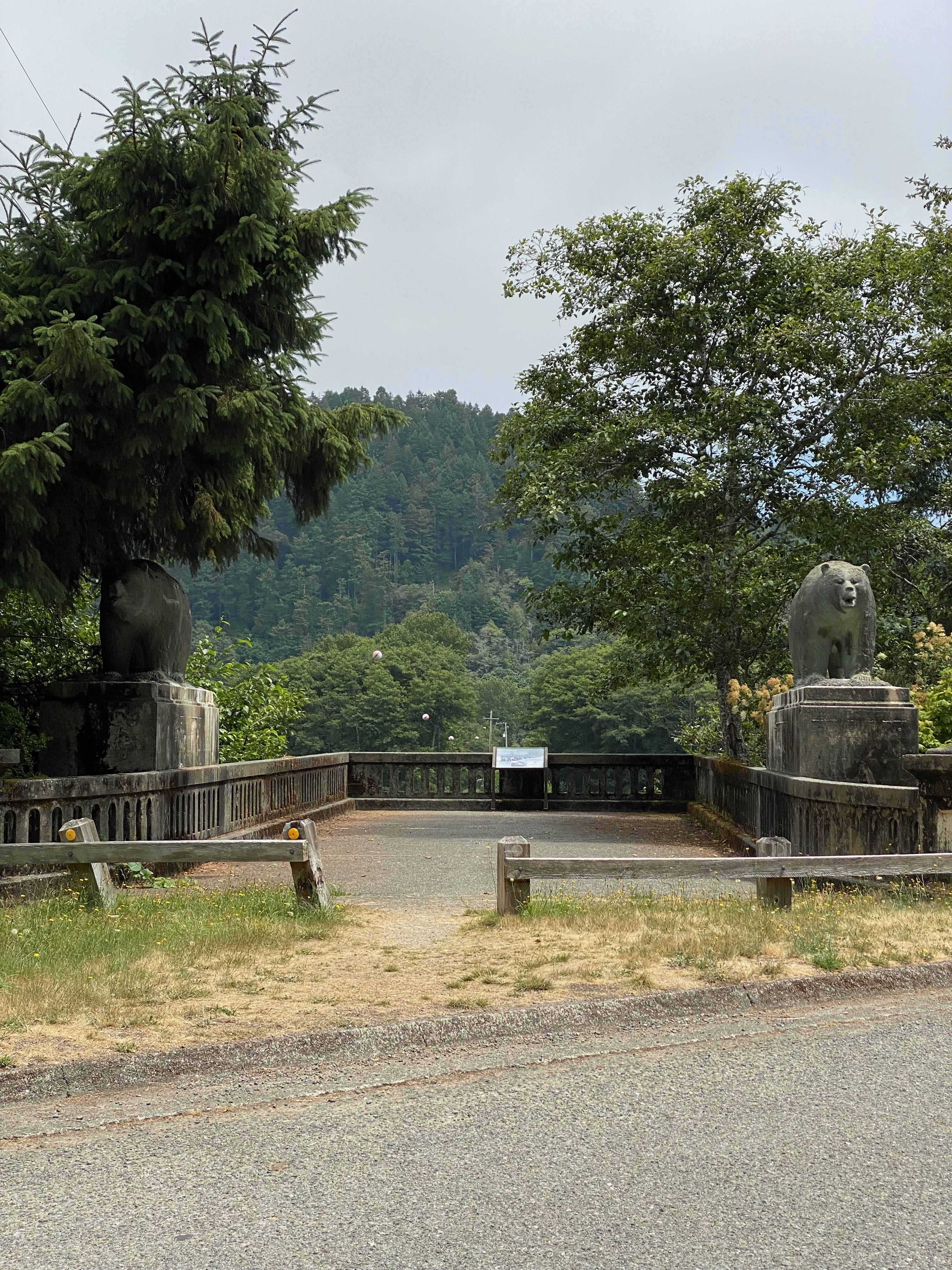 The town of Klamath was eventually rebuilt — on higher ground — and US Hwy 101 was rerouted to a spot with a higher span and better tolerance for biblical-scale calamity. The modern bridge features four California bear statues, similar to the ones that bracketed the destroyed bridge, and most drivers whizz across (no doubt thinking about beating the crowds to a drive thru tree).