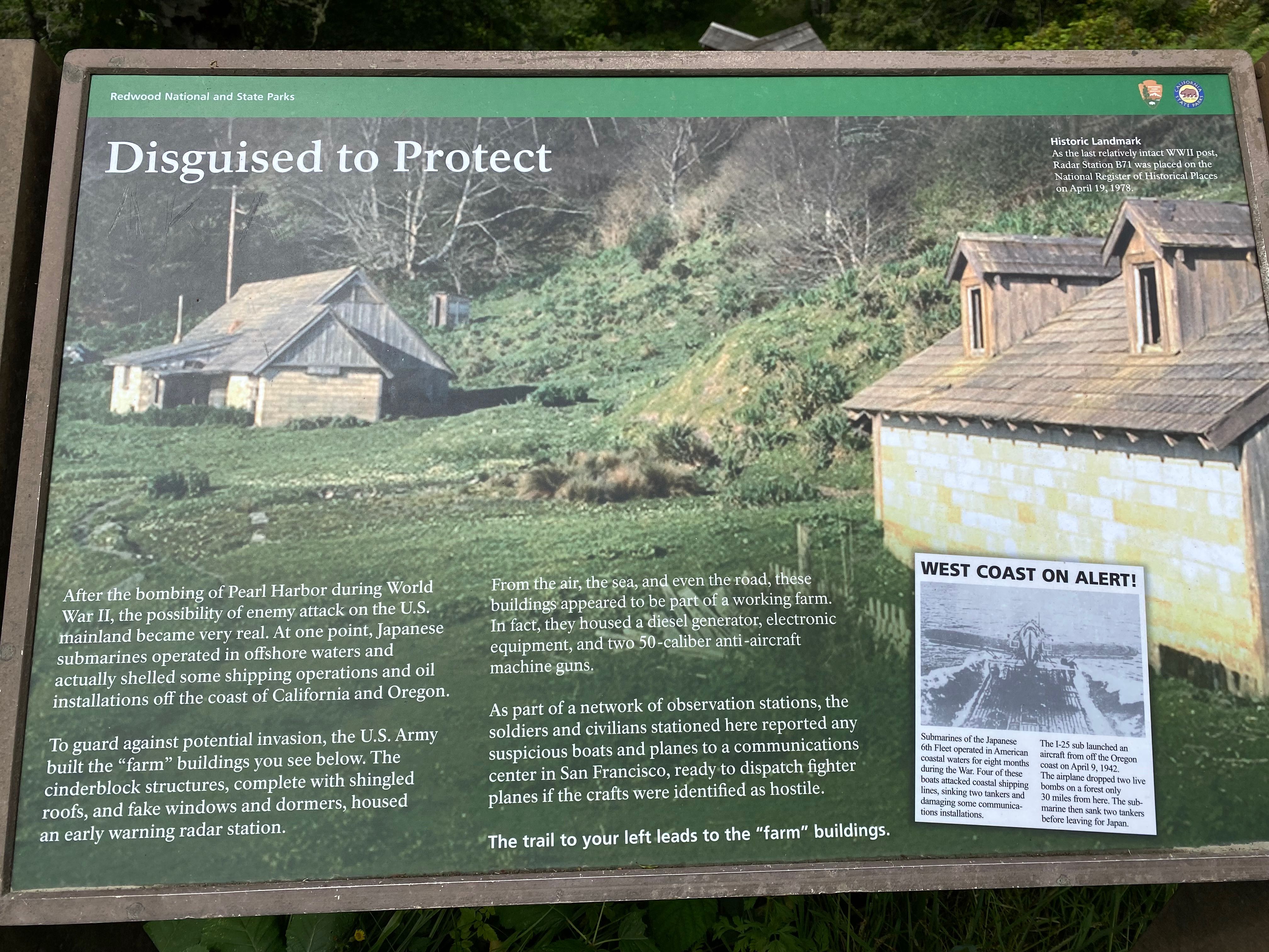 The Klamath station was designated by memorandum dated November 6, 1942 as Station B-71, named “Trinidad.” It was also referred to as the “Klamath River” station.  The complex included a Power Building, Operations Building, a privy and anti aircraft guns. The radar station was built immediately adjacent to, if not partly on, the historic old Trinidad-Crescent City wagon road.