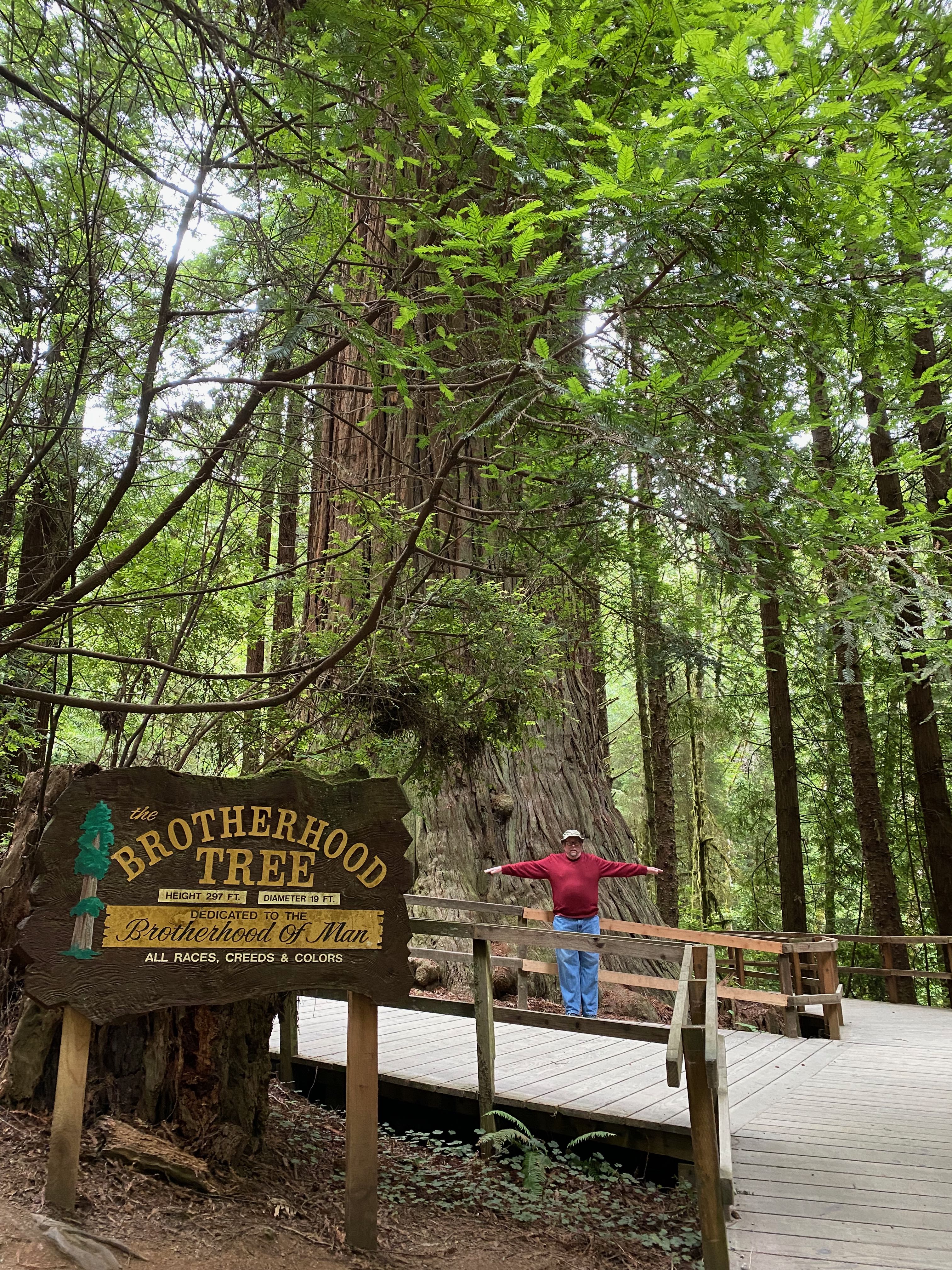 • Brotherhood Tree, named in hope for the brotherhood of man. It is over 2000 years old, 19 feet in diameter, 60 feet in circumference and 297 feet tall.