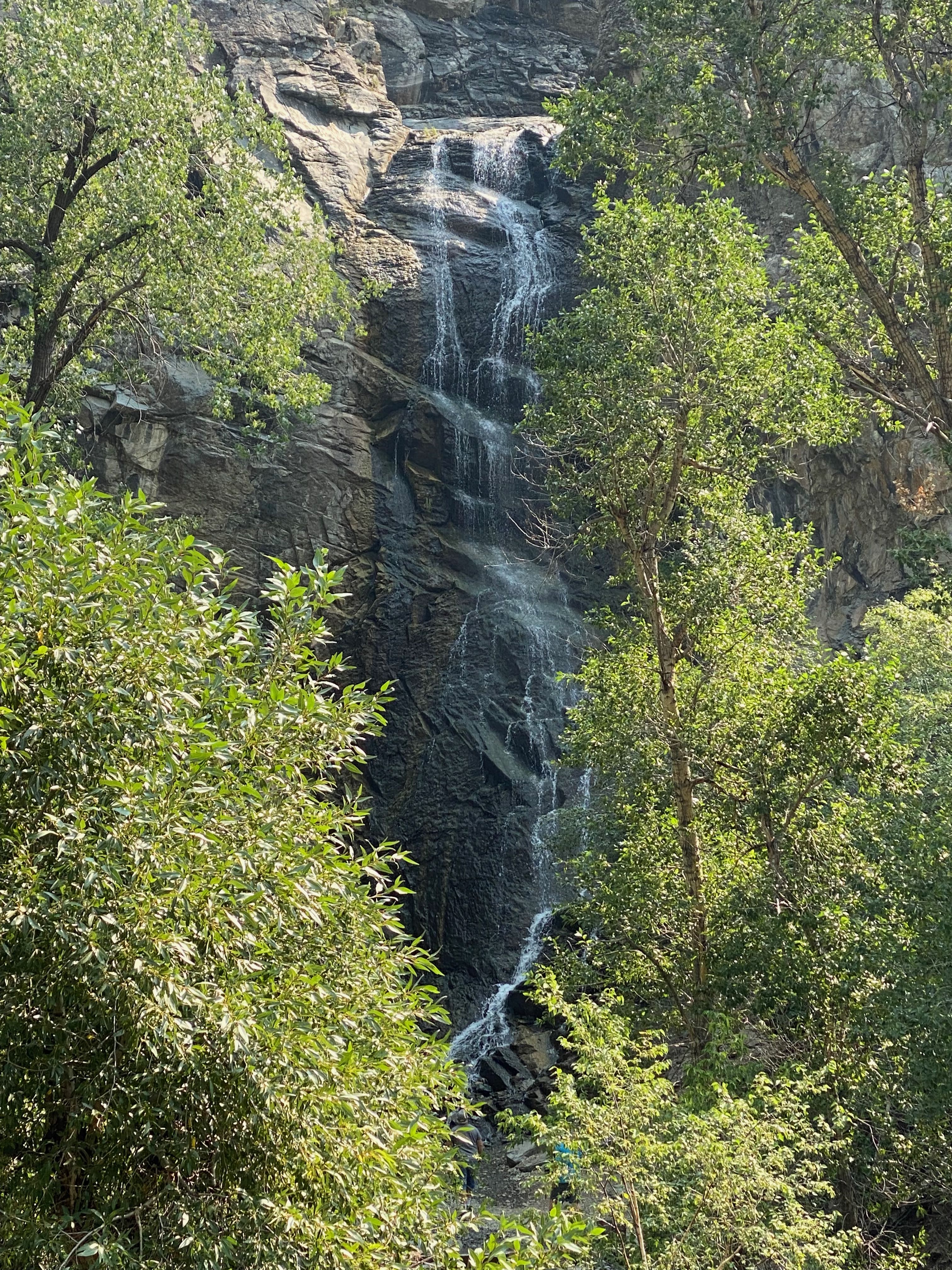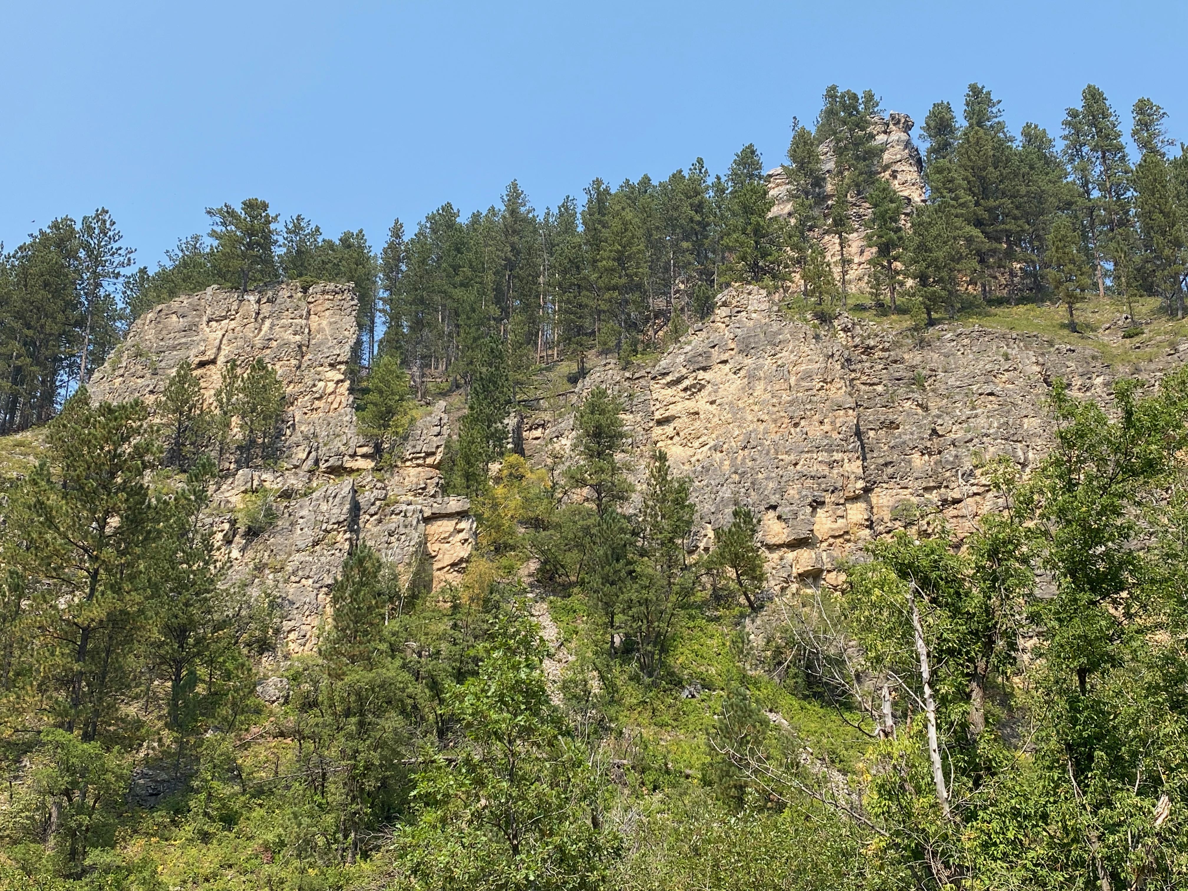 A couple of days later we drove Spearfish Canyon Scenic Byway. Thousand-foot-high limestone outcroppings in shades of brown, pink and gray tower on both sides of Highway 14A as it twists through the 19-mile gorge cut by Spearfish Creek. Along the way, we stopped at three waterfalls.