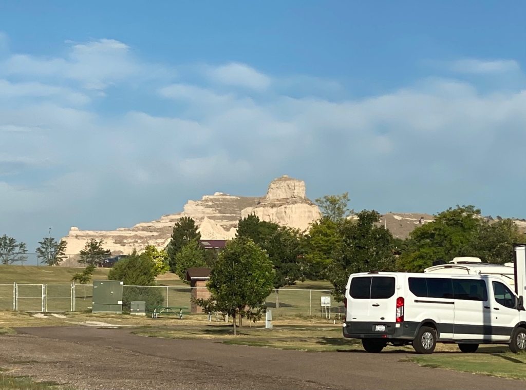 Basecamp for our stay here was Robidoux RV Park, a really nice park with lots of grassy space between sites. Each site was level with a concrete pad and patio with picnic table. It also provided a great view of Scotts Bluff National Monument.