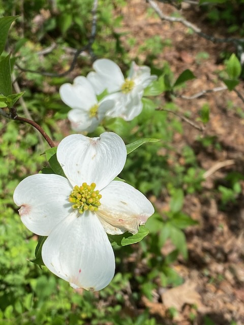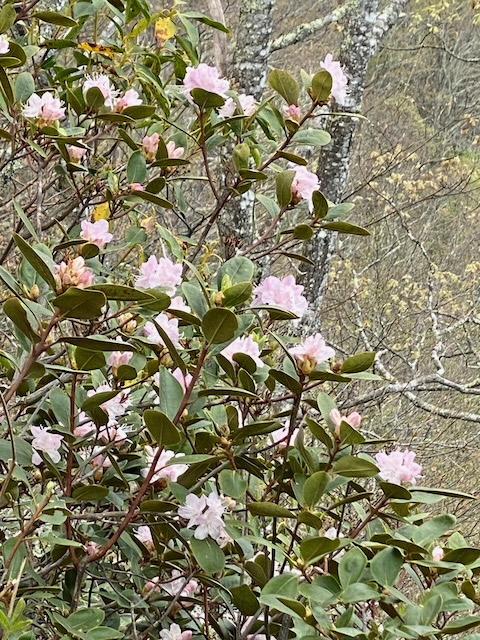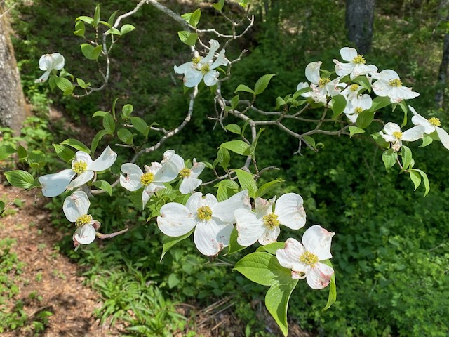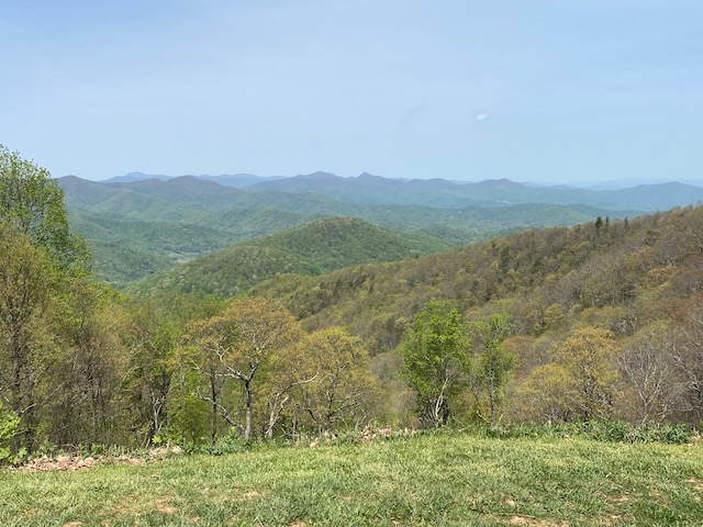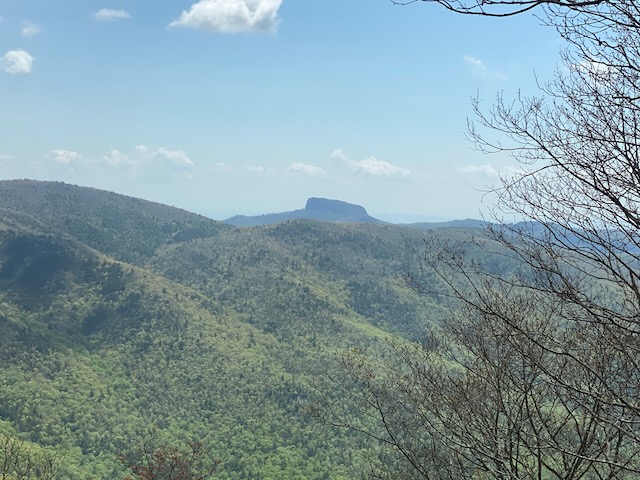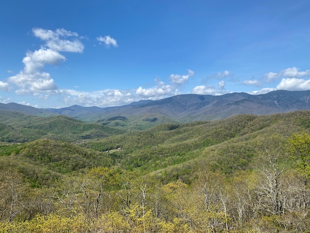 The following day we took I-40 west and turned off on the Blue Ridge Parkway heading southwest toward Mount Pisgah. The dogwoods were blooming and trees just beginning to bud at the higher elevations. Unfortunately the rhododendron were not out yet. We stopped at several of the overlooks to enjoy the view along the way until we reached the Pisgah Inn. There we split a soda and chocolate chunk cookie before heading back.