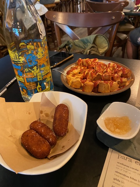 • patatas bravas (crispy fried potatoes topped with a slightly spicy tomato and garlic sauce).