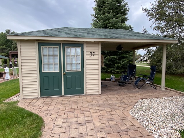 We brought a couple of zero gravity chairs, a patio umbrella, a portable fire pit, and our bicycles with us. We did round out our collection with a small patio dining table and chairs from the local Home Depot and Lowes. That’s about all we need for our limited time here this year. We’ll store everything in the shed when we leave and put the lot in the rental pool.