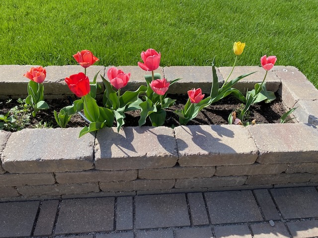 I did talk Bill into planting some geraniums in the planter once the tulips finished blooming.