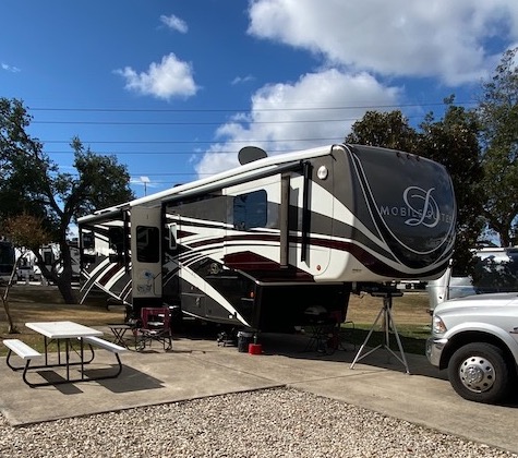 We left Durango on Sept. 26 and headed south out of Colorado (against Bill’s protest) into New Mexico and then east along I-40. This multi-day trek was a divergence from our original plan due to the blown tire and resulting RV body damage in July. At that time we had called Rolling Retreats (a DRV dealer and repair shop) in Elk City, Oklahoma and scheduled the repair for Sept. 29 – 30. Bill checked with them several times in the interim weeks to ensure that they would be ready for us. During one of those calls, they mentioned taking the RV to a body shop but never gave us further details. He called again as we were leaving Durango and they asked if we had been in contact with the body shop – wait, what???? It turned out that the body shop did not know we were coming and had no availability on their schedule anytime soon. So now what do we do? We debated about canning this detour and going to Albuquerque as originally planned but Bill had a couple of other issues that Rolling Retreats could do. Consequently our detour continued.