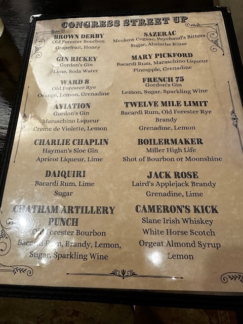 The tour concluded in the museum’s actually speakeasy where we could enjoy our choice of cocktail (or mocktail) from the menu. We both tried the Chatham Artillery Punch.