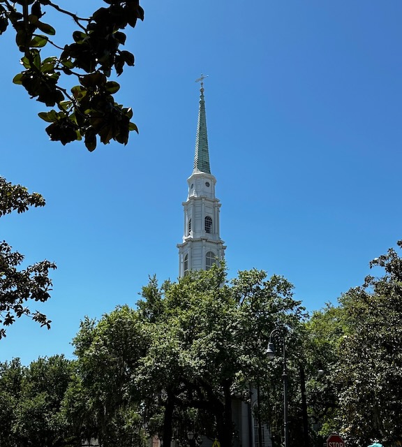 We continued our walk through Chippewa Square which was used in the the scene where Forrest Gump waited on a bench with a box of chocolates for the bus. The bench is not there. It was a fiberglass prop which is now in the Savannah History Museum, and the traffic actually flows in the opposite direction around the square. (So much for Hollywood accuracy.)