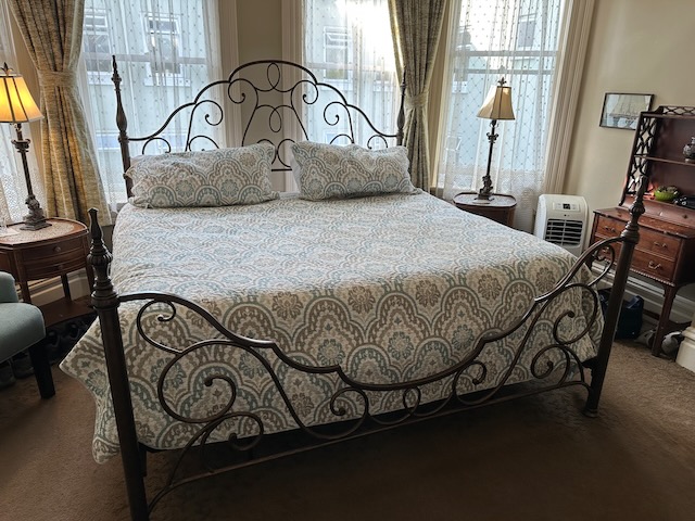 We had booked the East Suite which featured a king-sized bed under a bay window complete with wall-in closet, ensuite bath, air-conditioner, and tv. Although the room showed signs of wear, the closet had no light, and the tv mostly worked, we loved it. The bed was SO comfortable (!!) and we had plenty of space.
