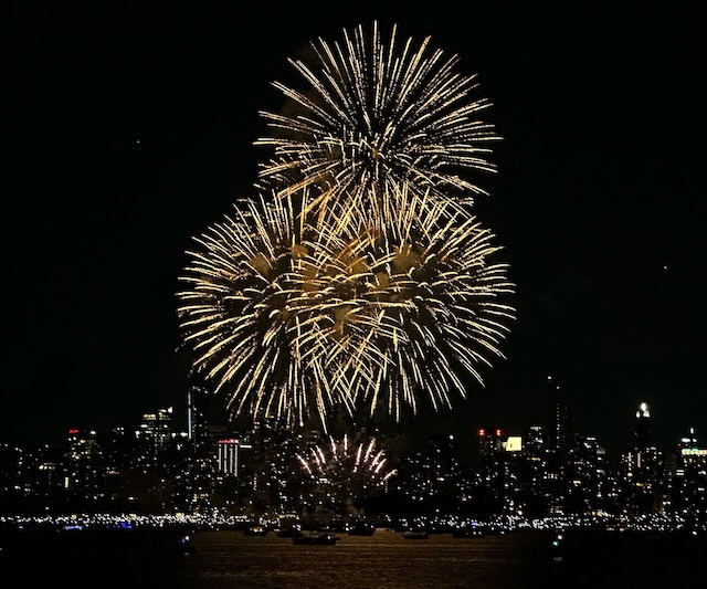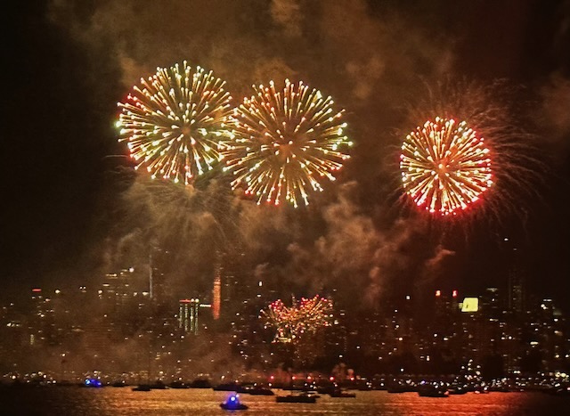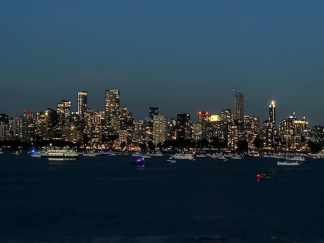It was just by chance that we were in Vancouver during the Honda Celebration of Light international fireworks competition. This competition spanned three nights – July 22 (Australia), July 26 (Mexico), and July 29 (the Philippines). We heard but did not see Mexico’s display from our B&B. Lots of folks told us how great that show was. We decided that we wanted to see the Philippines entry on the last night of the competition but we didn’t want to be in a large crowd on the beach. Instead, we opted for a sunset dinner cruise that would allow us a view from the water.
