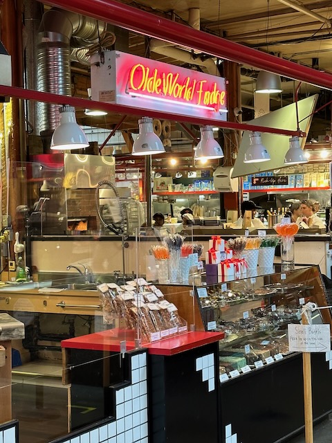 After working our way through the market and investigating the nearby shops, we decided to grab a light lunch at the Sandbar Restaurant located under the Granville Street Bridge. Then it was back to the market to pick up some treats for later in the evening – parma ham, serrano ham, cheese, baguettes, cherries, and wine – before returning to the B&B.