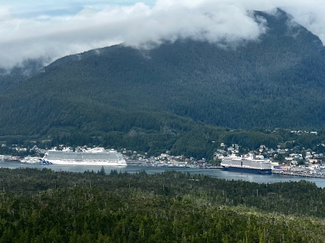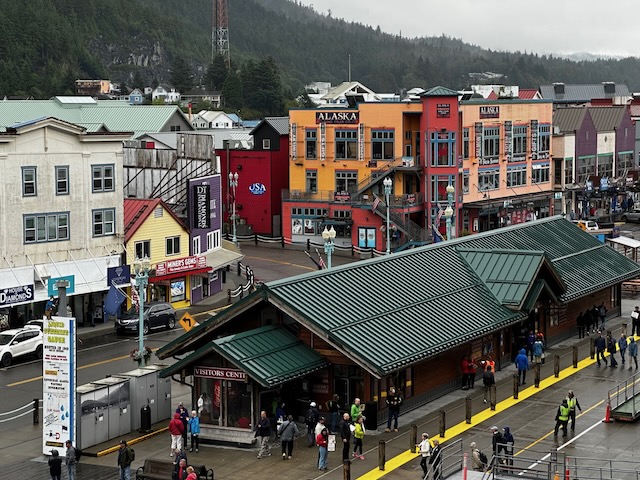 We had arranged an independent excursion – Misty Fjords National Monument Flightseeing Tour – with Island Wings Air Service. After breakfast in the cabin, we went ashore to meet our transportation at the Rain Gauge. From there, we were driven to the Island Wings office where we met owner and pilot Michelle. Unfortunately, the weather in the fjords was not cooperating, and since we didn’t have to be back aboard our ship until 2:30, she suggested that we reconvene at noon.