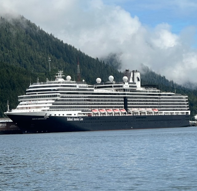 Our last post left off with us piling into a taxi in Vancouver. We were headed for the cruise terminal at Canada Place where Holland America Line’s (HAL) Nieuw Amsterdam awaited to take us on a 7 day Alaska cruise. The Nieuw Amsterdam is the second ship in Holland America’s Signature class ships. It was built in 2010 and refurbished in 2017. The ship accommodates 2106 guests, is 936 feet long and 105.8 feet wide. We had previously cruised on HAL’s Noordam (Vista class) and Koningsdam (Pinnacle class) but this was the first time on Nieuw Amsterdam.
