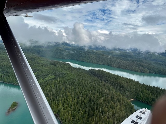 Back at Island Wings, Michelle told us that our tour was a go. She loaded us (along with 4 others) into her 1959 DeHavailland Beaver (named the Lady Esther) where we each donned a headset so that we could communicate and we took off.
