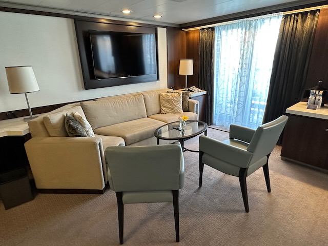 We had booked a Neptune Suite with a private veranda, sitting area, and access to the Neptune Lounge. When we entered, we were actually quite amazed at the size of the suite.