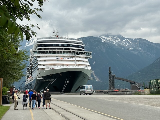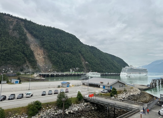 The ship docked in Skagway around 7 a.m. so we again discovered land outside our veranda when we opened the curtains that morning. We had an interesting view of the rock slide that occurred in 2022 and destroyed one of the cruise ship docks.