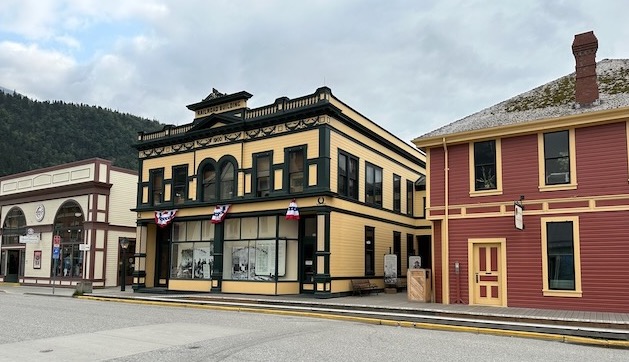 Skagway has one of the most colorful histories of any place in Alaska. In 1896, gold was found in the Klondike region of Canada’s Yukon Territory. Beginning in the summer of 1897, thousands of hopeful miners poured in to the new town and prepared for the 500-mile journey to the gold fields in Canada. This journey began for many when they climbed the mountains over the White Pass above the town and onward across the Canada border to the Lake Bennett, or one of its neighboring lakes, where they built barges and floated down the Yukon River to the gold fields around Dawson City. Others disembarked at nearby Dyea, northwest of Skagway, and crossed northward on the Chilkoot Pass, an existing Tlingit trade route to reach the lakes. Some prospectors also realized how difficult the trek would be that lay ahead on the route and chose to stay behind to supply goods and services to miners. Within a year, stores, saloons, and offices lined the muddy streets of Skagway. The population was estimated at 8,000 residents during the spring of 1898 with approximately 1,000 prospective miners passing through town each week. By June 1898, with a population between 8,000 and 10,000, Skagway was the largest city in Alaska.
