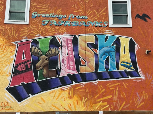 The next day we were scheduled to go on an included riverboat cruise and gold dredge tour but decided to take the day off. Instead, we slept in (although the Holland America representative called at 8 a.m. wondering where we were). We walked to The Crepery for a late breakfast and then to the Morris Thompson Cultural and Visitor Center.