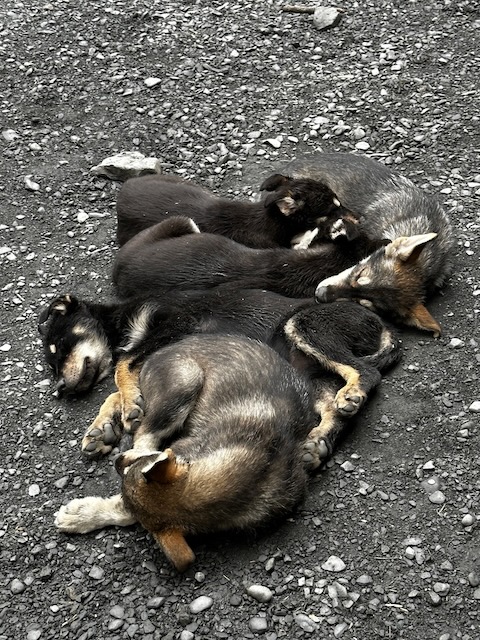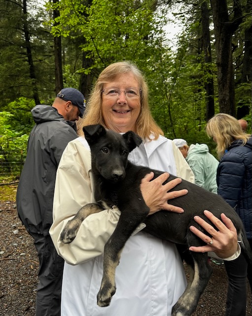 Next we were given the opportunity to play with the adorable puppies. You may note that these pups are not purebred Huskies or Malamutes but are a special “Alaskan” dog bred for strength and endurance. The “breed” is not recognized by the American Kennel Club.