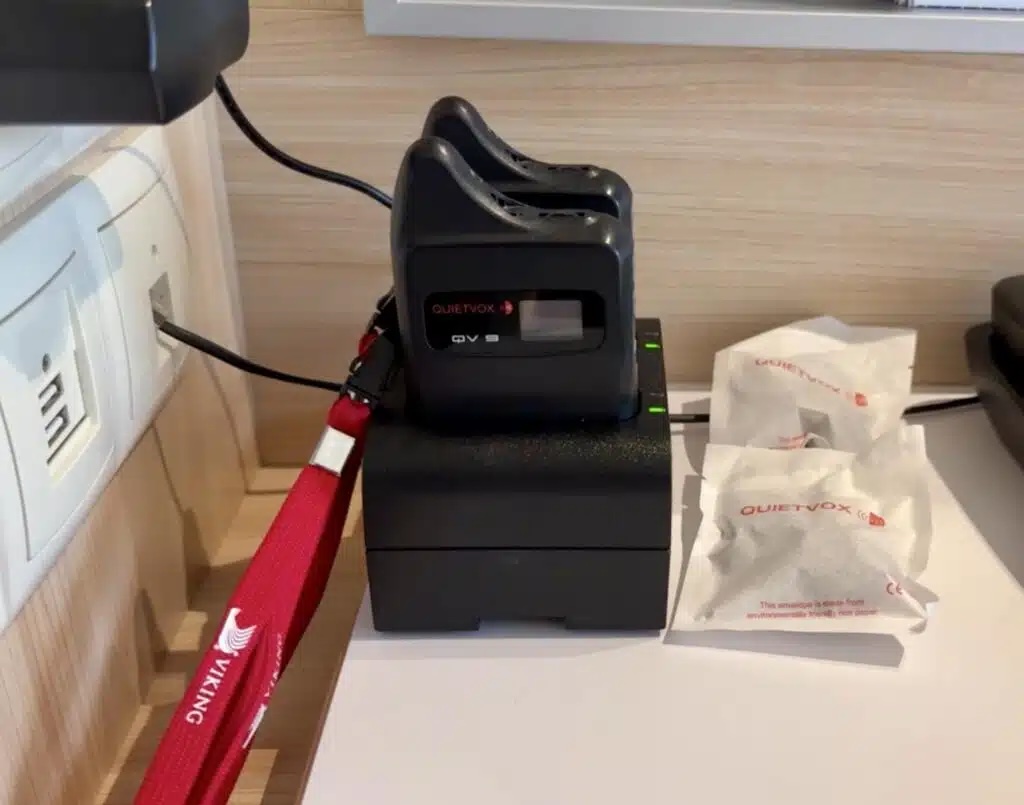 Following breakfast we made a brief stop at our stateroom to grab our rain jackets, umbrella, our tour tickets (delivered each night by our stateroom steward along with the next day’s program) and our QuietVox(es).