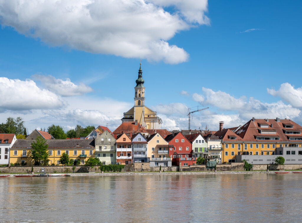 Description: Board a boat, exploring the Inn River as the rolling hills of Upper Austria and Lower Bavaria unfold around you. Meet your guide for a drive upriver through the Bavarian countryside. Soon, you will arrive at the quaint little Austrian town of Schärding on the Inn River, just a short distance from Passau. Take a walking tour with a local guide, admiring the gracefully curved gabled roofs of multihued pastel houses facing the picturesque baroque central square. Then embark a small boat to cruise the famous emerald-green waters of the Inn River. As you get underway, you will see the onion-domed tower of St. George’s Church peering over the town. Enjoy beer and a pretzel as you take in views of the passing countryside, with German Bavaria on one side and Upper Austria on the other.