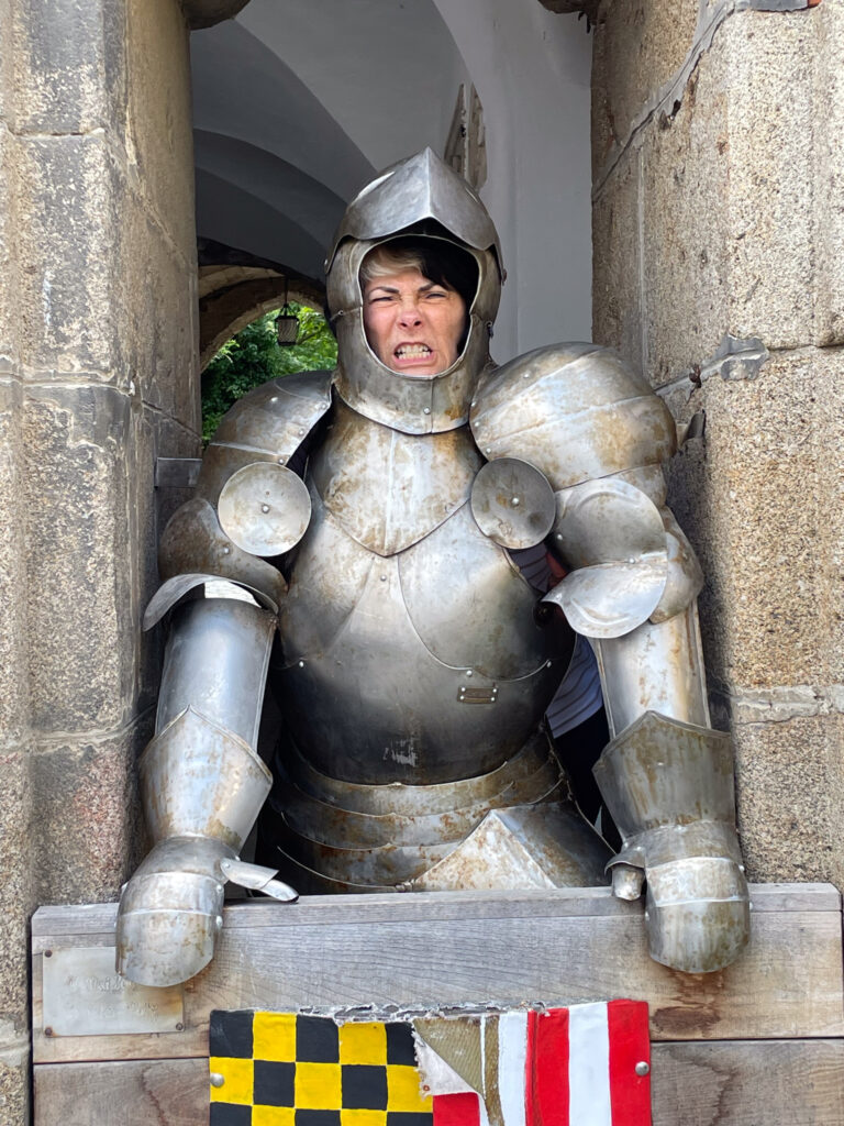 When we arrived in Schärding, we set off on a walking tour of this colorful town. The architecture is a mix of many styles and periods, the best example probably being the Baroque “Silberzeile” row of houses where rich market traders once lived. In the Middle Ages, due to its location, Schärding became a center of trade, particularly for salt, timber, ores, wine, silk, glass, grain, textiles and livestock.
