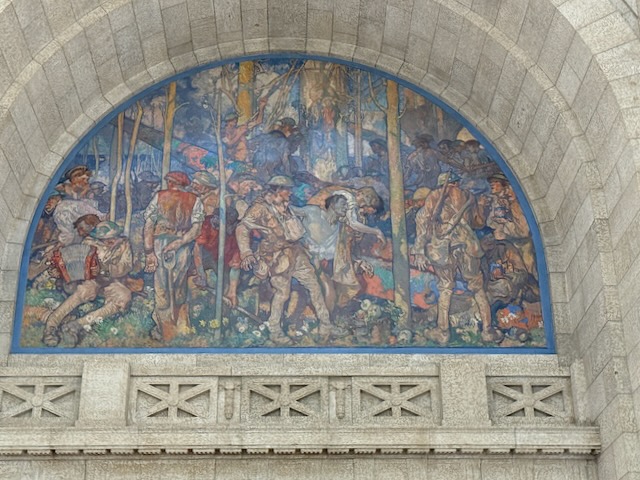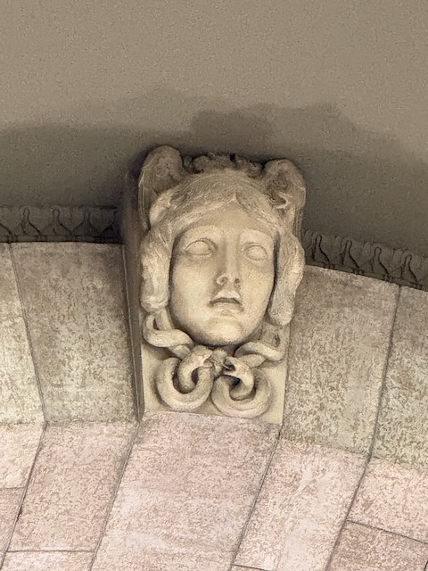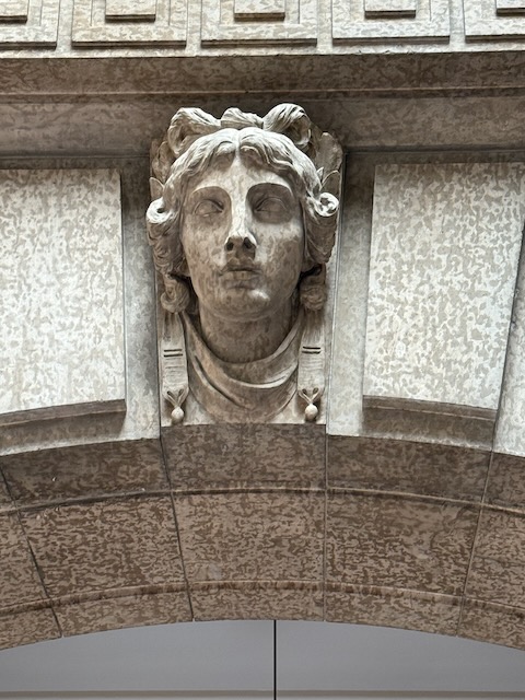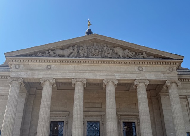 Prior to entering the building, our guide explained the significance of the architecture and drew our attention to the Pediment above the entrance, the two sphinx above that, and the Golden Boy that crowns the building.