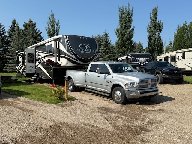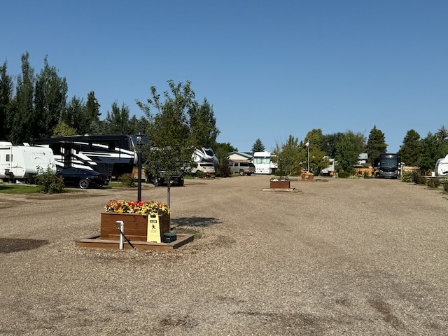 We wanted to stay at the campground within the Dinosaur Provincial Park but we missed the reservation window. Instead Bill found a small campground about 30 minutes away from the park.