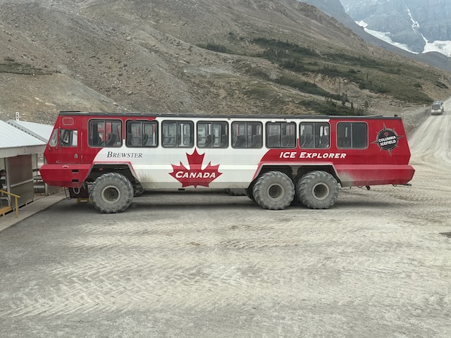 At our reserved time, we boarded a shuttle bus to the Icefield transfer bay. We exited the shuttle bus and immediately boarded a massive Ice Explorer, a vehicle purpose-built for glacier travel.