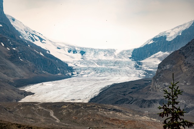 The Athabasca Glacier is not the only glacier here. We were told that an Icefield is so named because it is the meeting point of two or more glaciers. The Columbia Icefield actually boasts the meeting of 6 glaciers: